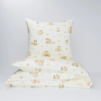 Pościel dla dziecka bawełniana 100x160 + poszewka na poduszkę 50x60 | 234bez | beżowa | sowy zwierzątka