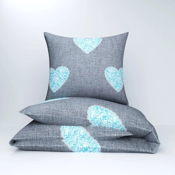 Pościel dla dziecka bawełniana 120x180 + poszewka na poduszkę 50x60 | 330turk | szaro turkusowa | serca walentynki