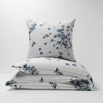 Pościel dla dziecka bawełniana 120x180 + poszewka na poduszkę 70x80 | 237cha | biało niebieska | kwiaty