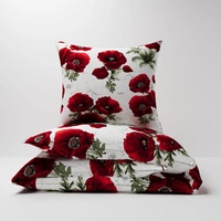 Pościel dla dziecka bawełniana 120x180 + poszewka na poduszkę 70x80 | 237mak | biało czerwona | kwiaty maki