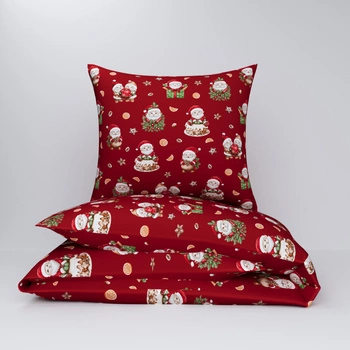 Pościel dla dziecka bawełniana 120x180 + poszewka na poduszkę 50x60 | 002bor | bordowa | świąteczna Mikołaje