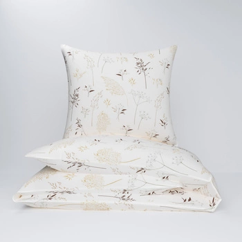 Pościel dla dziecka bawełniana 120x180 + poszewka na poduszkę 50x60 | 102tra | kremowo beżowa | listki gałązki trawy