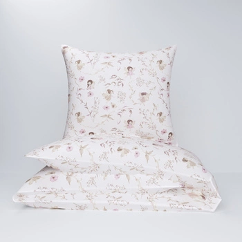 Pościel dla dziecka bawełniana 120x180 + poszewka na poduszkę 70x80 | 154pas | beżowo różowa | wróżki i kwiaty