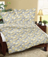 Pościel dla dziecka bawełniana 140x160 + poszewka na poduszkę 70x80 | 219zol | szaro żółta | kwiaty