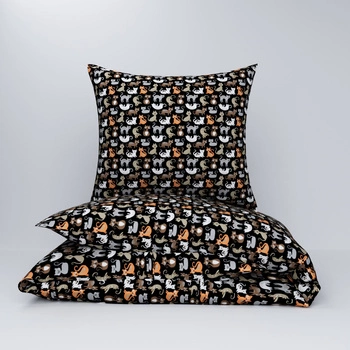 Pościel dla dziecka bawełniana 140x160 + poszewka na poduszkę 50x60 | 432rud | czarno brązowa | koty