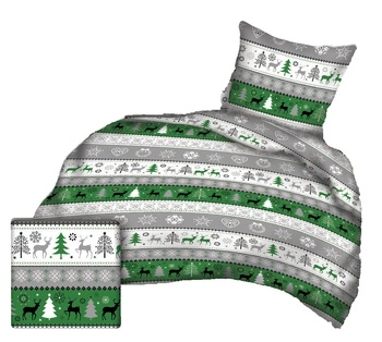 Pościel bawełniana 140x200 + poszewka na poduszkę 70x80 | 446red | szaro zielona | renifery świąteczna