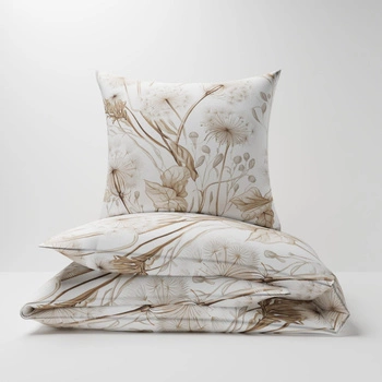 Pościel bawełniana 140x200 + poszewka na poduszkę 70x80 | 373beż | beżowa | dmuchawce