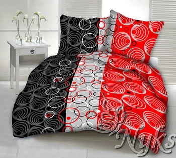 Pościel bawełniana 140x200 + poszewki na poduszkę 2*70x80 | 361czer | czarno czerwona | wzór graficzny