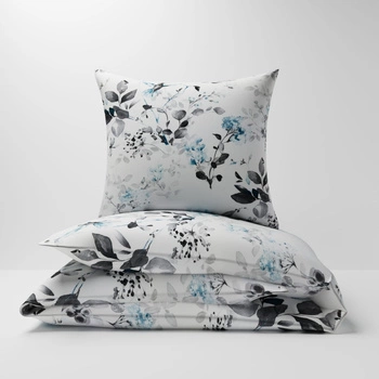 Pościel bawełniana 140x200 + poszewka na poduszkę 70x80 | 237cha | biało niebieska | kwiaty