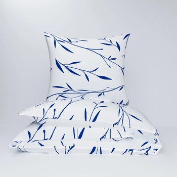 Pościel bawełniana 140x200 + poszewka na poduszkę 70x80 | 102bgr | biało granatowa | listki gałązki