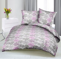 Pościel flanela 140x200 + poszewki na poduszkę 2*70x80 | 384s-r | szaro różowa | kwiaty