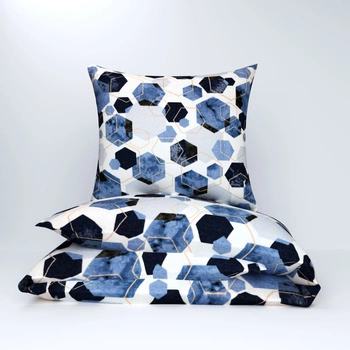 Pościel flanela 140x200 + poszewki na poduszkę 2*70x80 | 208Ngr | biało granatowa | heksagony
