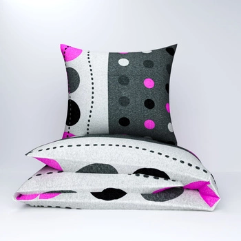 Pościel flanela 140x200 + poszewka na poduszkę 70x80 | 083róż | szaro różowa | wzór geometryczny koła