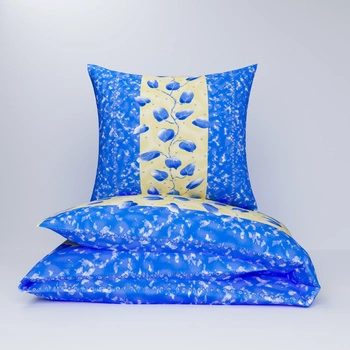 Pościel flanela 160x200 + poszewka na poduszkę 50x60 | 043nie | niebieska | liście fasoli