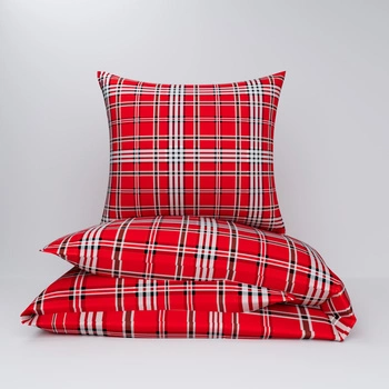 Pościel flanela 160x200 + poszewki na poduszkę 70x80 + 40x40 | 028red | czerwona | krata kratka