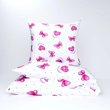 Pościel flanela 160x200 + poszewka na poduszkę 70x80 | 142róż | różowa | serca i kokardy