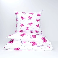 Pościel flanela 160x200 + poszewka na poduszkę 50x60 | 142róż | różowa | serca i kokardy
