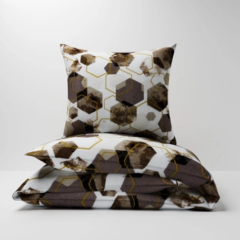 Pościel flanela 160x200 + poszewka na poduszkę 50x60 | 208Nbe | biało beżowa | heksagony