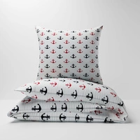 Pościel z kory 140x200 + poszewka na poduszkę 50x60 | 074red | biała | kotwice