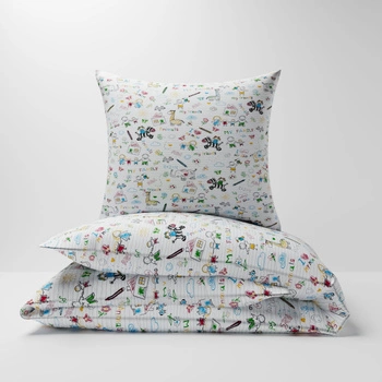 Pościel z kory 140x200 + 70x80 + 40x40 | 455róż | szaro różowa | liście monstera