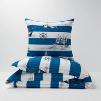 Pościel z kory 140x200 + poszewka na poduszkę 70x80 | 065niebieski | niebieska | latarnie pasy i żaglowce