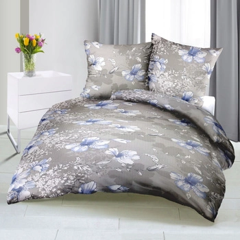 Pościel z kory 140x200 + poszewka na poduszkę 70x80 | 143niebieski | szara | kwiaty