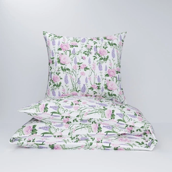 Pościel z kory 140x200 + poszewka na poduszkę 50x60 | 158róż | biała | polne kwiaty
