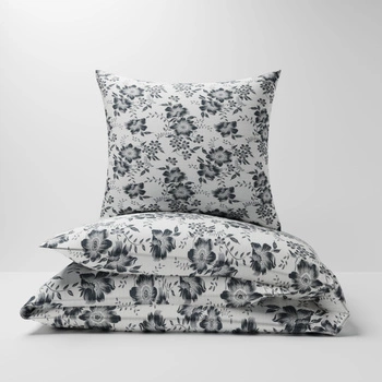 Pościel z kory 140x200 + poszewka na poduszkę 50x60 | 116szary | szara | kwiaty