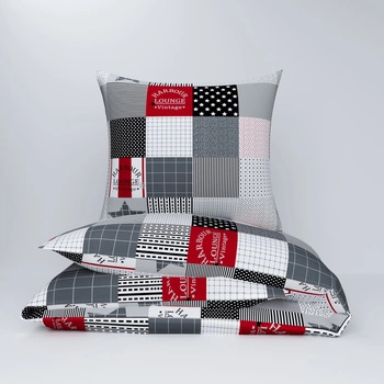 Pościel z kory 140x200 + poszewki na poduszkę 2*70x80 | 190red | czerwona | Patchwork z gwiazdą