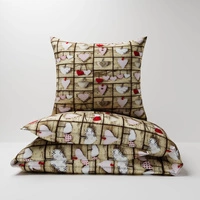Pościel z kory 140x200 + poszewki na poduszkę 2*70x80 | 073bra | brązowa | patchwork z sercami