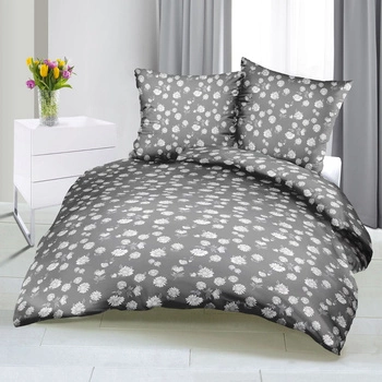 Pościel z kory 140x200 + poszewki na poduszkę 2*70x80 | 274grf | grafitowa | kwiaty stokrotki