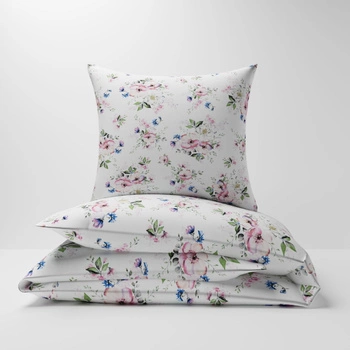 Pościel z kory 140x200 + poszewki na poduszkę 2*70x80 | 143róż | szara | kwiaty