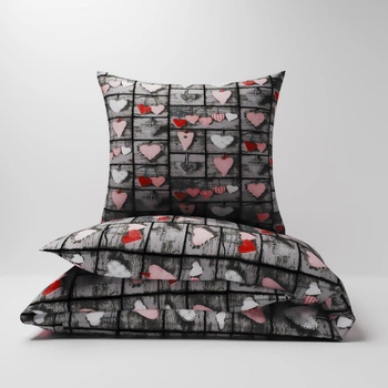 Pościel z kory 160x200 + poszewka na poduszkę 50x60 | 078szar | szara | serca i pasy