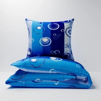 Pościel z kory 160x200 + poszewka na poduszkę 70x80 | 034nieb | niebieska | bąbelki na pasach