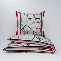 Pościel z kory 160x200 + poszewka na poduszkę 50x60 | 031czerw | szaro czerwona | geometryczny