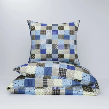 Pościel z kory 160x200 + poszewka na poduszkę 50x60 | 107nieb | niebieska | patchwork