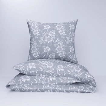 Pościel z kory 160x200 + poszewka na poduszkę 50x60 | 117mięta | szaro miętowa | kwiaty róże