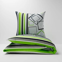Pościel z kory 160x200 + poszewka na poduszkę 70x80 | 031s-z | szaro zielona | geometryczny