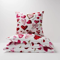 Pościel z kory 160x200 + poszewka na poduszkę 50x60 | 073b-c | biało czerwona | Walentynkowe serca