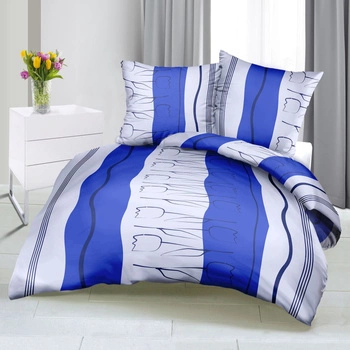 Pościel z kory 160x200 + poszewka na poduszkę 70x80 | 209niebieski | biała | drobne kwiatuszki