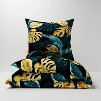 Pościel z kory 160x200 + poszewka na poduszkę 70x80 | 455mor | czarna | liście monstera