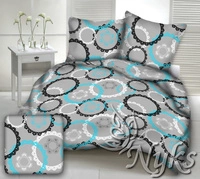 Pościel z kory 160x200 + poszewka na poduszkę 50x60 | 353turkus | szaro turkusowa | koła żębate
