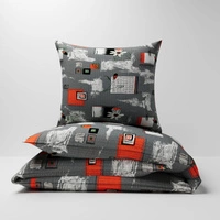 Pościel z kory 160x200 + poszewka na poduszkę 70x80 | 041s-c | szaro czerwona | kwiaty