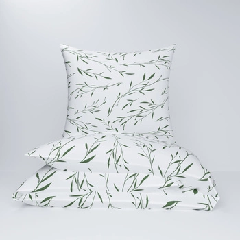 Pościel z kory 160x200 + poszewka na poduszkę 70x80 | 102bzi | biało zielona | liście