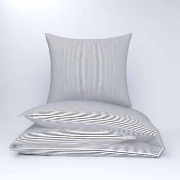 Pościel z kory 200x220 + poszewki na poduszkę 2*70x80 | 213sza | biało szara | paski pasy