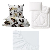Zestaw pościeli 100x160 + 50x60 + prześcieradło jersey 80x160 | 186Kbr | biała | konie