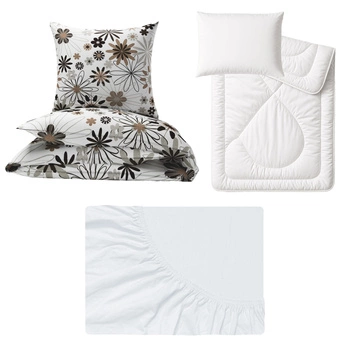 Zestaw pościeli 100x160 + 50x60 + prześcieradło jersey 80x160 | 068bra | brązowa | kwiaty