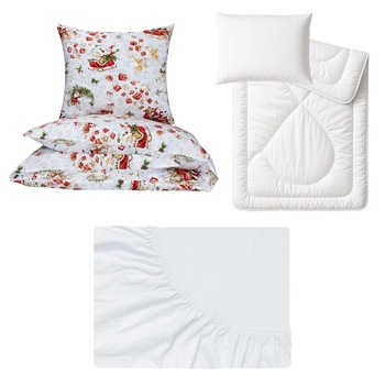 Zestaw pościeli 100x160 + 50x60 + prześcieradło jersey 80x160 | 002mik | biała | świąteczna Mikołaje
