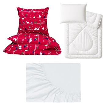 Zestaw pościeli 100x160 + 50x60 + prześcieradło jersey 80x160 | 327red | czerwona | wzór świąteczny renifery