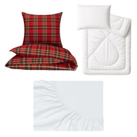 Zestaw pościeli 100x160 + 50x60 + prześcieradło jersey 80x160 | kraswi | czerwona | krata świąteczna